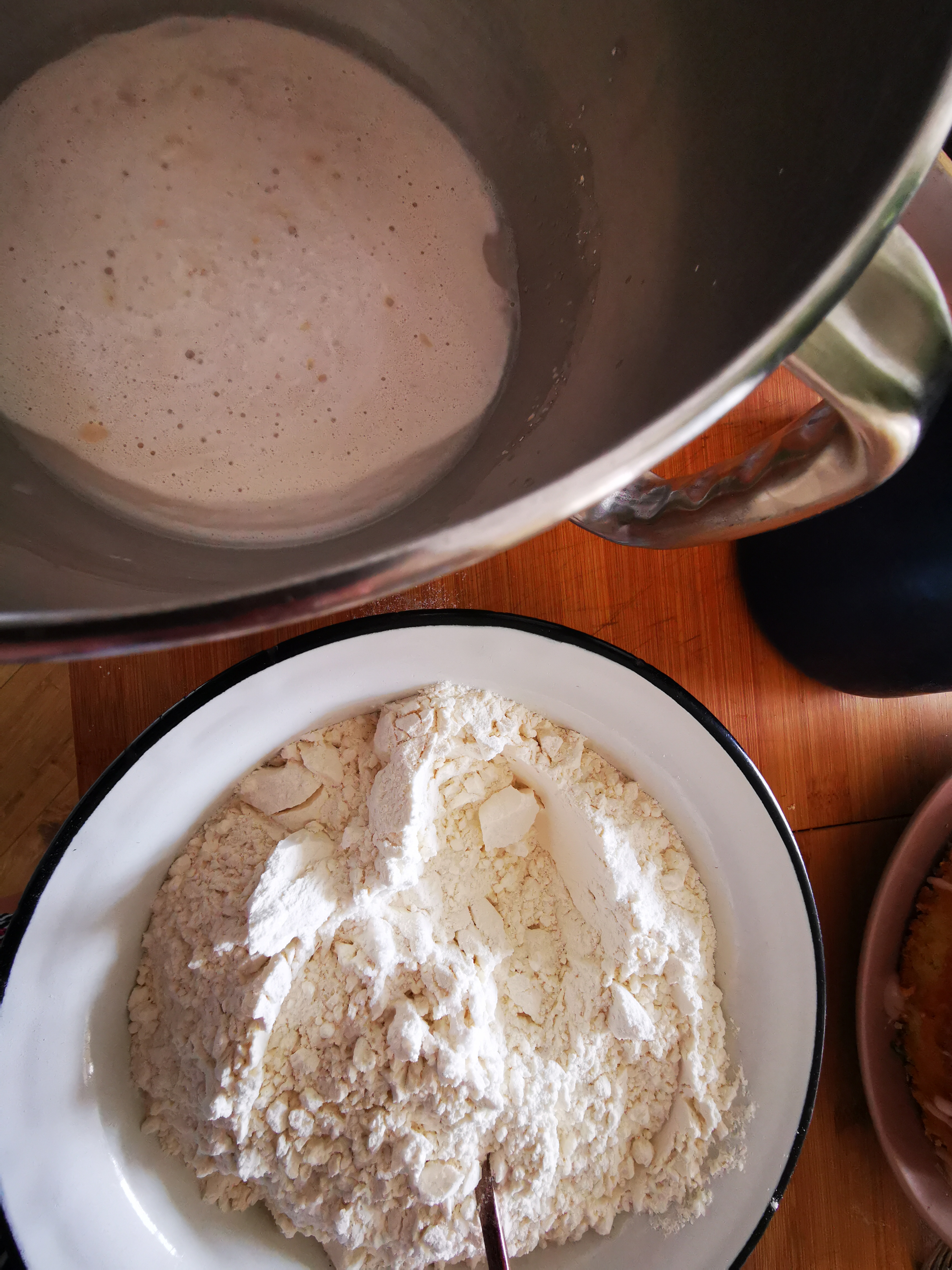 Tuo metu įkaitinti orkaitę 200C. Ir užkaisti didelį puodą su daug vandens, į vandenį dėti medų arba geriau salyklą (idėjus salyklo ar medaus, susiformuoja saldi išorė).