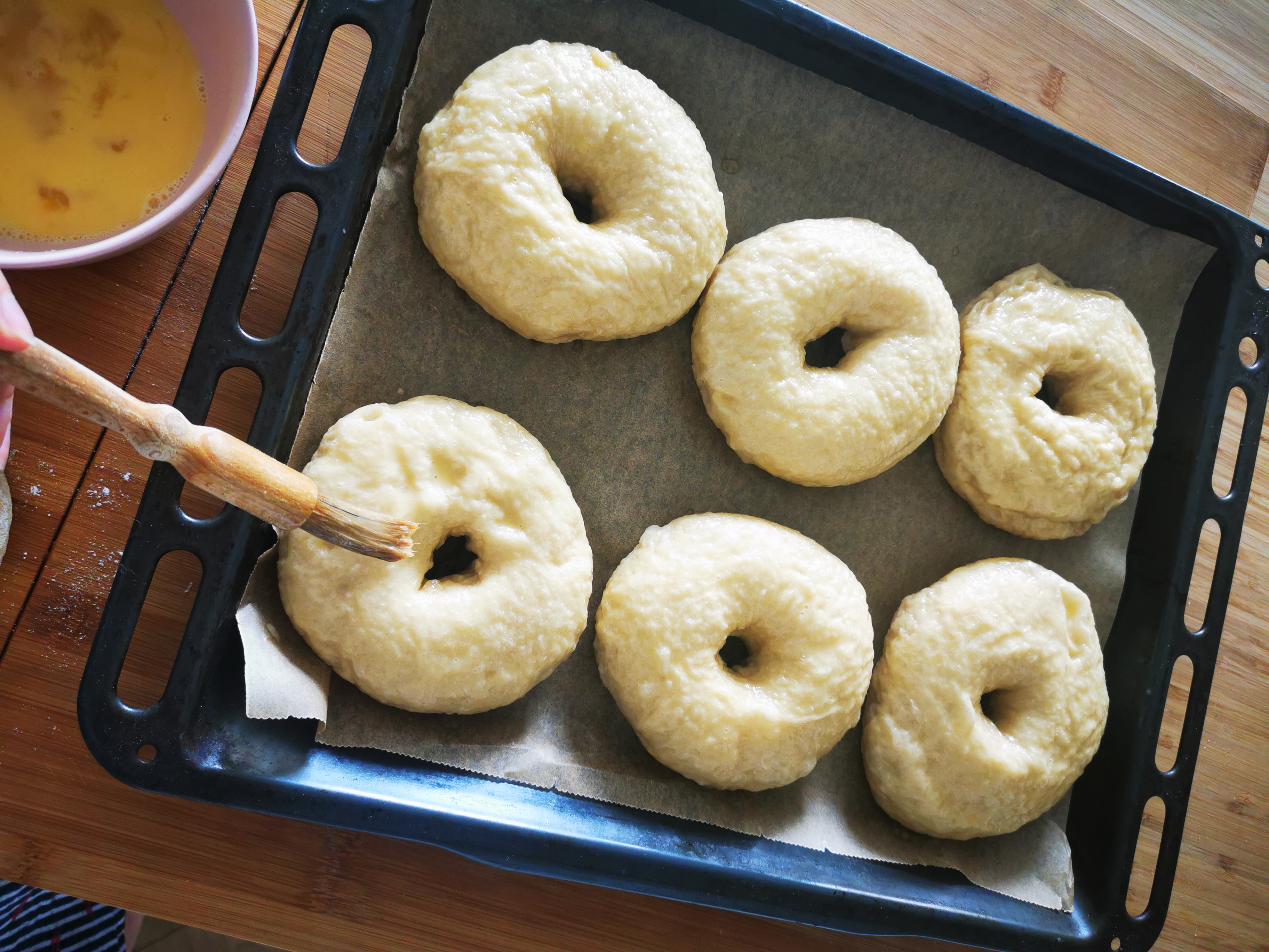 Rutuliukai pakyla, tuomet pamiltuoti pirštus, vienu pirštu spausti skylutę viduryje rutuliuko. Pakelti rutuliuką ir dviem pirštais suimti per vidurį ir suformuoti skylutę, sukant tarp pirštų. Skylutę reiktų daryt čiut didesnę, nes kylant tešlai ji užsitrauks.